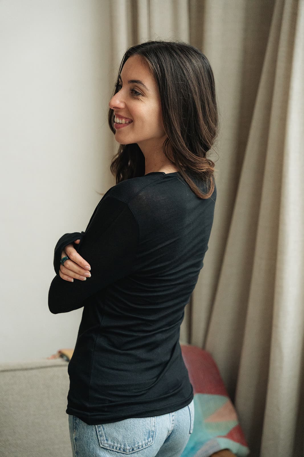 -douceur: la laine a des fibres très fines qui se plient au contact de la peau. Nos pièces sont incroyablement douces et confortables.