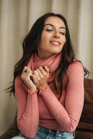 Un trio d’hiver à la fois utile et joli. Pour rester au chaud tout en douceur, on opte pour des matières naturelles comme la laine mérinos ou le cachemire, qui tiennent chaud sans faire transpirer.